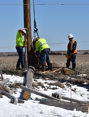 Mother nature brought quite the surprise to Kansans on March 19, just a few hours after a beautiful 85-degree day. Snow and 70 mile per hour wind gusts closed highways and businesses and caused devastation to much of the western Kansas electric grid. Sunflower Electric, the Generation and Transmission provider for the western part of Kansas, suffered transmission line damage from Johnson City to Dodge City, while electric cooperatives, including Lane-Scott, experienced extensive outages, and equipment damage.